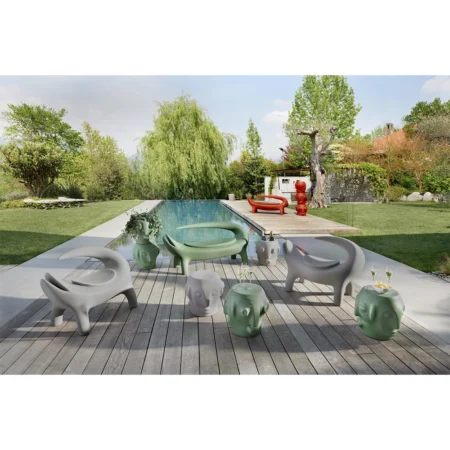 Trois visages, un symbole autour duquel se retrouver. Marcantonio conçoit Threebù Party, porte-bouteille contemporain, évolution de rituels ancestraux de partage d'espaces et de temps revécus grâce à l'esprit pop de SLIDE et caractérisé par le trait le plus sérieux pour le designer : l'ironie. Avec une saveur ethnique mais extrêmement