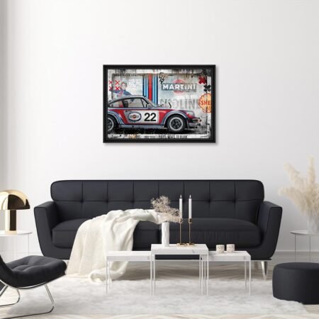 Découvrez notre superbe Tableau « 911 RSR », une reproduction encadrée sans verre créée par Rubix. Imprimée sur un PVC souple de qualité supérieure, cette reproduction présente un fini mat sur le fond, tandis que le motif est mis en valeur par un vernis sélectif élégant et discret.