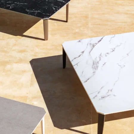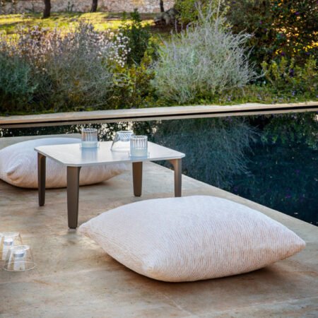 Push est une table basse de jardin avec un plateau en grès cérame. La vie en plein air est faite de situations différentes mais complémentaires, avec pour dénominateur commun de vouloir profiter au maximum, assis sur le canapé, autour d'une table ou allongé sur une chaise longue, de ce que l'extérieur peut