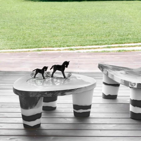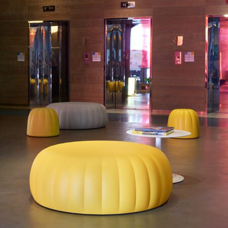 Lanzavecchia Wai a créé la collection Piuma sur le concept de douceur et de légèreté ensemble au minimalisme du design. Le choix de l’aluminium comme base structurelle du projet est combiné avec durabilité, car ce matériau est totalement recyclable. La membrane osmotique offre une résistance aux agents atmosphériques tandis que les dossiers et accoudoirs inclinables permettent positions multiples, au point de devenir presque un lit de repos.