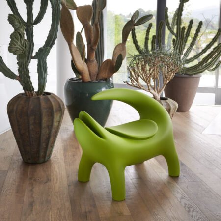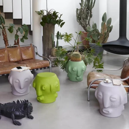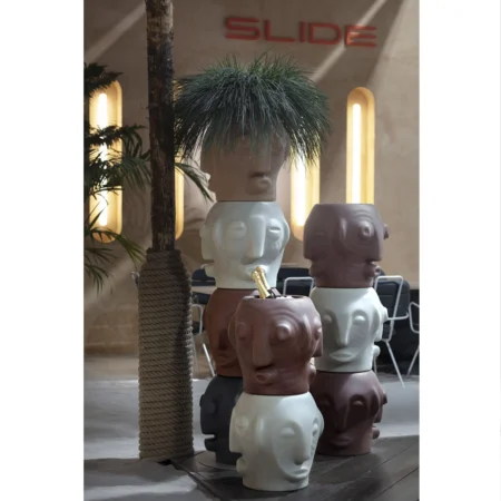 Trois visages, un symbole autour duquel se retrouver. Marcantonio conçoit Threebù Party, porte-bouteille contemporain, évolution de rituels ancestraux de partage d’espaces et de temps revécus grâce à l’esprit pop de SLIDE et caractérisé par le trait le plus sérieux pour le designer : l’ironie. Avec une saveur ethnique mais extrêmement polyvalente, Threebù Party est également disponible dans les versions Threebù Pot, Threebù tabouret/table basse et Threebù Totem lampe au sol. Avec le fauteuil Kroko et le canapé Big Kroko, les produits Threebù appartiennent à la collection Afrika.