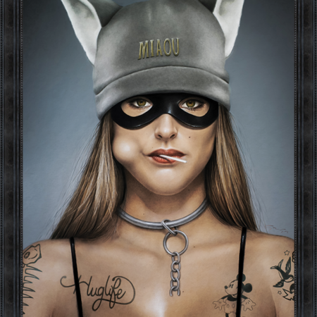 Romaric est né en 1975, il a déjà eu plusieurs vies artistiques et professionnelles. Arrangeur pour de nombreuses maisons de disques, puis compositeur de musique de film et enfin artiste peintre et graphiste. Un vrai touche à tout ! Attiré par l’art depuis son adolescence, il a testé au fil des années de nombreuses techniques. Du collage à l’acrylique en passant par le posca, son style s’est affiné en utilisant des techniques mixtes relevées de touches urbaines. Toujours agrémentées de poésie, ses créations opposent le noir et blanc aux couleurs acidulées, soutenues de grafittis. « Chaque œuvre que je réalise est une alchimie des choses qui me tiennent à cœur ». Dans les collages numériques et les graphes, Romaric nous glisse certaines références : des détails et des clins d’œil à son enfance urbaine, nous dévoilant un peu plus son univers.