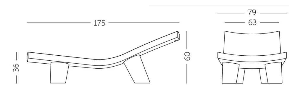 Dimensions : 175 x 79 h 60 cm – Hauteur d’assise 36 cm